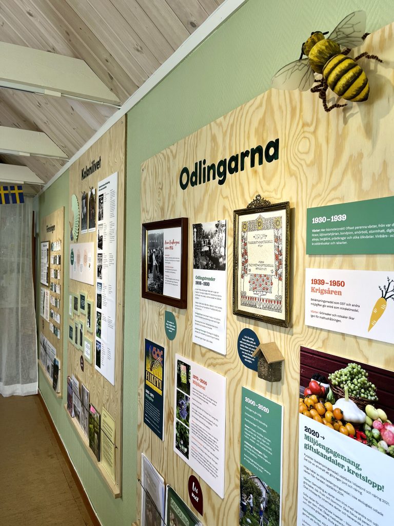 2014 öppnade vi vårt Kolonimuseum på 14 kvadratmeter i den lilla röda ladan i Tobakshagen intill lotterna 83–85. Utställningen vänder sig till våra kolonister och till en intresserad allmänhet. Vi har en fast utställningsdel och en utställningsdel med olika teman.